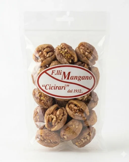 La tradizione dei fichi ripieni è antichissima, risalente addirittura ai tempi dei Romani e dei Greci, che consideravano il fico un frutto sacro. In particolare nel Sud Italia, l’arte di “maritare” i fichi (ovvero unirli a due a due con un ripieno di mandorle o noci) era un rito propiziatorio oltre che un metodo di conservazione. La forma a croce o a fagottino, spesso utilizzata, serviva simbolicamente a proteggere il prezioso raccolto e la famiglia che lo consumava durante l’inverno. Un dolce che è anche un piccolo amuleto di prosperità!