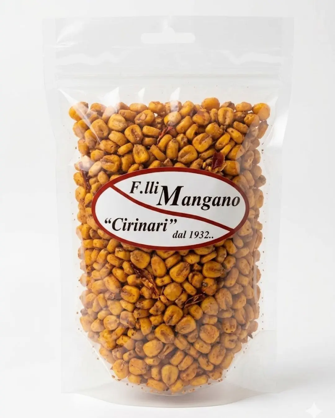 Il Mais Tostato Piccante (conosciuto anche come corn nut) è lo snack che ha rivoluzionato il concetto di aperitivo. Noi di F.lli Mangano selezioniamo chicchi di mais di alta qualità, che vengono tostati fino a raggiungere una consistenza leggermente aerata e incredibilmente friabile. Il tocco finale è dato da una speciale miscela di spezie e peperoncino che avvolge ogni chicco, regalando una persistenza aromatica che invita a un altro assaggio.